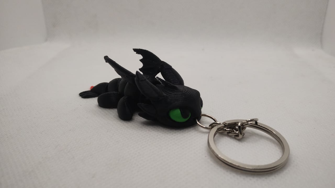 Bring legendary dragon power to your keys with this Night Fury–inspired articulated dragon, 3D printed using eco-friendly PLA material. Featuring a flexible, jointed design and sharp detailing, this lightweight dragon makes a perfect gift for fantasy lovers, kids, and collectors.